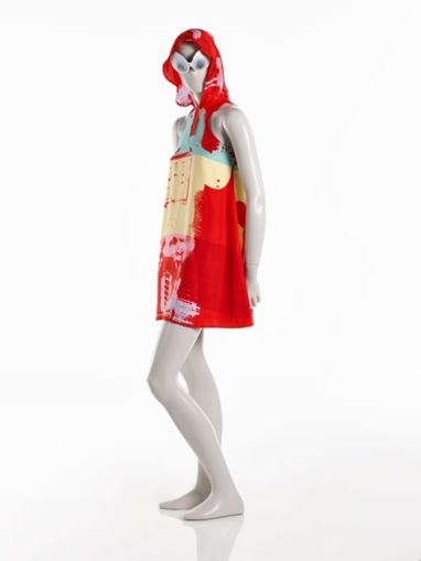 Mark DescriptionDesigner Label, at center back neck, orange woven ground with [1] light orange text outlined in black and [2] below in black script with light orange shadow effect: [1] Sprouse™ | [2] Andy Warhol® Size Label, below designer label, whit woven ground with black text: 40 Care/Materials Label, at proper lift side of seam and directly on top of one another, white ground with black text: [only the English is recorded here] 100% | SILK | MADE IN ITALY | LINING | 100% | RAYON
